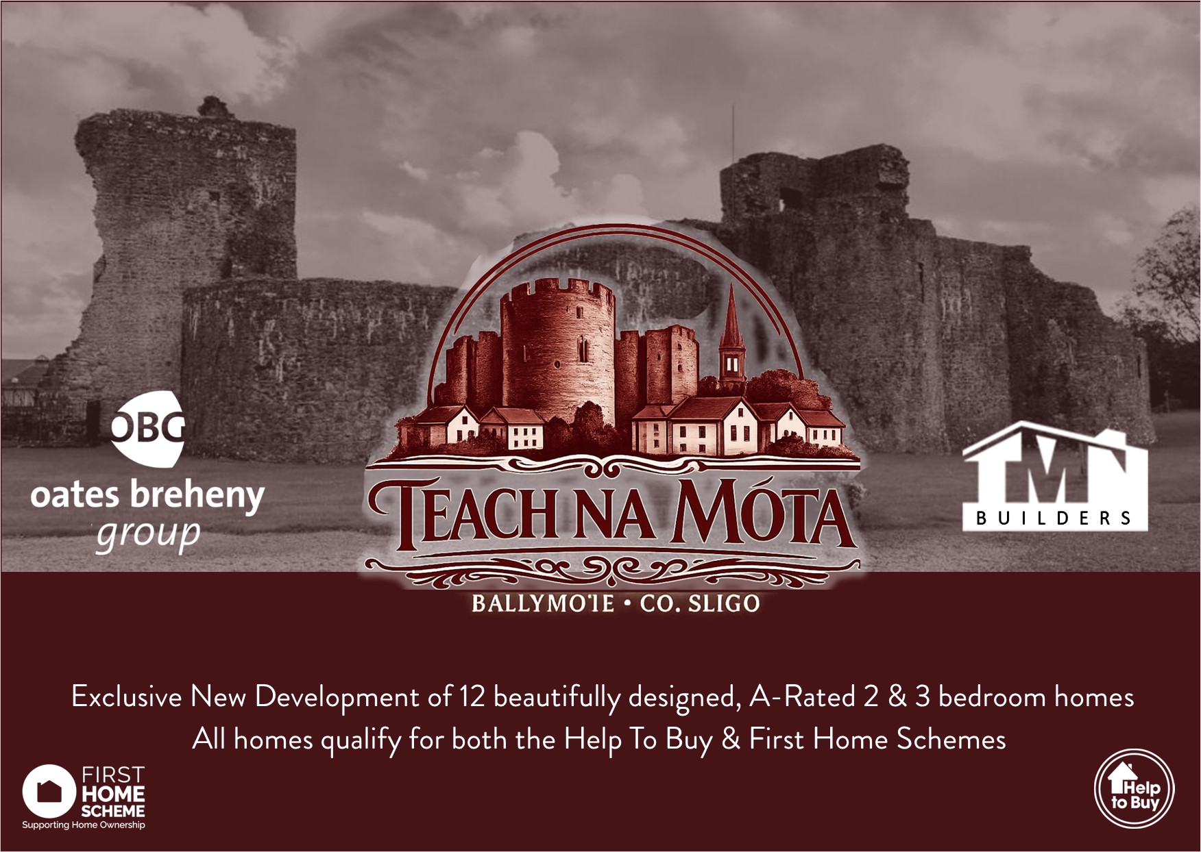 Teach Na Móta is a new housing development in Ballymote, County Sligo, with 2- and 3-bedroom A-rated homes. It’s being developed by Oates Breheny Group in partnership with Tom McNicholas Builders. It’s designed as a small scheme of 12 homes, with features like underfloor heating, a heat pump, off-street parking, and eligibility for the Help to Buy and First Home schemes.
